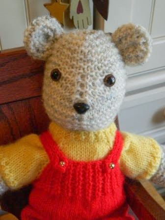 The yarn makes this bear special, too. It's left over from a sweater that I made with yarn that I purchased on my first visit to Cheltenham in England. I visited a lovely yarn shop there. The yarn is Stylecraft Aran with Wool. I've been wearing the sweater for about 5 years and it's still in great shape.